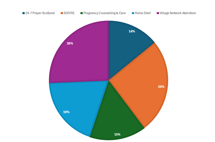 Due to having a slight surplus in 2025, we were able to support 3 of our 2026 projects in advance (Magnitude, Safe Families & Home for Good, Oasis Counselling Service).